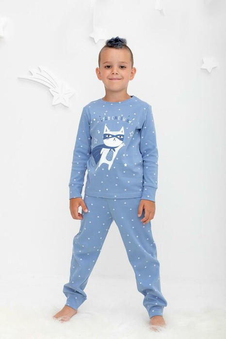 Трикотажная пижама из натурального хлопка. Джемпер с длинными втачными рукавами и брюки с эластичной резинкой в поясе. Мягкие манжеты на рукавах и по низу брюк. Оригинальная набивка и принт выполнены из стойких текстильных гипоаллергенных красителей. Изделие сохраняет цвет и форму после многократных стирок. Все трикотажные полотна производятся в соответствии с нормами швейцарского сертификата ЭкоТекс.