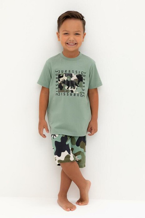 Crockid пижама для мал К 1528/эвкалипт.камуфляж с динозаврами