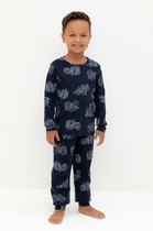 Трикотажная пижама из натурального хлопка. Футболка с короткими втачными рукавами и прямые брюки с эластичной резинкой в поясе. Оригинальные набивка и принт выполнены из стойких гипоаллергенных текстильных гипоаллергенных красителей. Изделие сохраняет цвет и форму после многократных стирок. Все трикотажные полотна производятся в соответсвии с нормами швейцарского сертификата ЭкоТекс.