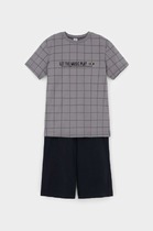 Трикотажная пижама из натурального хлопка. Футболка с короткими втачными рукавами и прямые брюки с эластичной резинкой в поясе. Оригинальные набивка и принт выполнены из стойких гипоаллергенных текстильных гипоаллергенных красителей. Изделие сохраняет цвет и форму после многократных стирок. Все трикотажные полотна производятся в соответсвии с нормами швейцарского сертификата ЭкоТекс.