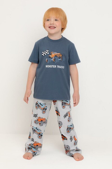 Трикотажная пижама из натурального хлопка. Футболка с короткими втачными рукавами и прямые брюки с эластичной резинкой в поясе. Оригинальные набивка и принт выполнены из стойких гипоаллергенных текстильных гипоаллергенных красителей. Изделие сохраняет цвет и форму после многократных стирок. Все трикотажные полотна производятся в соответсвии с нормами швейцарского сертификата ЭкоТекс.