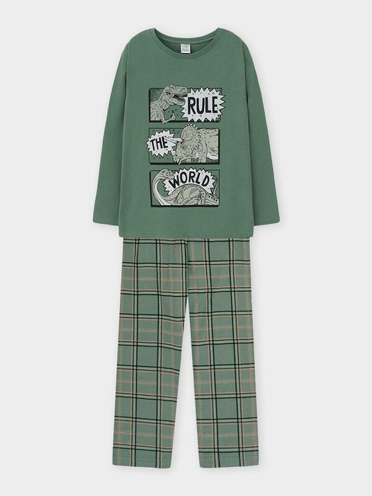 Пижама для мальчика из натурального хлопка. Джемпер с длинными втачными рукавами и прямые брюки с эластичной резинкой в поясе. Оригинальная набивка и принт выполнены из стойких текстильных гипоаллергенных красителей. Изделие сохраняет цвет и форму после многократных стирок. Все трикотажные полотна производятся в соответствии с нормами швейцарского сертификата ЭкоТекс.