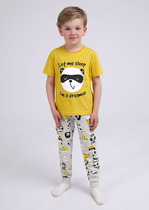 Пижама для мальчика из натурального хлопка. Футболка с короткими втачными рукавами и шорты с эластичной резинкой в поясе. Оригинальная набивка выполнена из стойких текстильных гипоаллергенных красителей. Изделие сохраняет цвет и форму после многократных стирок. Все трикотажные полотна производятся в соответствии с нормами швейцарского сертификата ЭкоТекс.