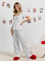 Комплект для комфортного сна и отдыха из гладкого трикотажного полотна. Футболка с короткими спущенными рукавами и прямые брюки с мягкой эластичной резинкой в поясе, которые удобно садятся по фигуре. Лёгкий материал приятен к телу, не теряет форму и позволяет коже дышать. Все трикотажные полотна производятся в соответствии с нормами швейцарского сертификата ЭкоТекс.
