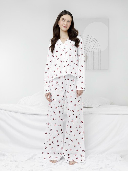 Трикотажная пижама из натурального хлопка для комфортного сна и отдыха. Рубашка на пуговицах с длинными рукавами и широкие брюки с мягкой эластичной резинкой в поясе. Гладкий материал приятен к телу, не теряет форму и позволяет коже дышать. Набивной рисунок выполнен из стойких текстильных гипоаллергенных красителей. Все трикотажные полотна производятся в соответствии с нормами швейцарского сертификата ЭкоТекс.