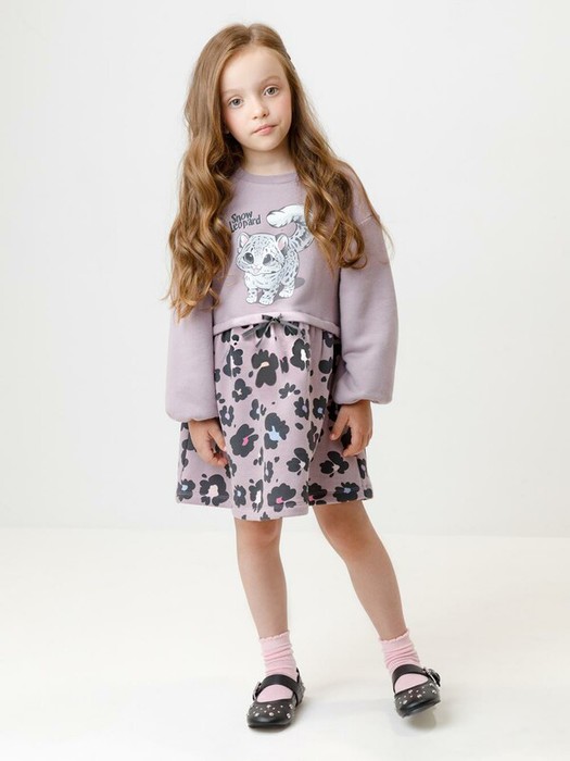 Тёплое платье для девочки с имитацией юбки и джемпера. Изготовлено из мягкого трикотажа с начёсом. В размерах 92 и 98 на спине застёгивается на кнопки. Оригинальный рисунок выполнен из стойких текстильных гипоаллергенных красителей. Изделие сохраняет цвет и форму после многократных стирок. Все трикотажные полотна производятся в соответствии с нормами швейцарского сертификата ЭкоТекс.