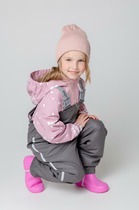 Демисезонный полукомбинезон детский с утеплителем 60г/м2. Выполнен из мембранной ткани с дополнительной тефлоновой обработкой. Данный вид обработки предохраняет изделие от загрязнения и лучше отводит влагу. Подклад из 100% полиэстра. Эластичные лямки для удобства регулируются по длине. Область коленей дополнительно усилена деталями из основной ткани. Низ на резинке, регулируется по ширине при помощи липучки. Для фиксации полукомбинезона используются съемные силиконовые штрипки. Во всех изделиях верхнего ассортимента для безопасности ребенка предусмотрены светоотражающие элементы.