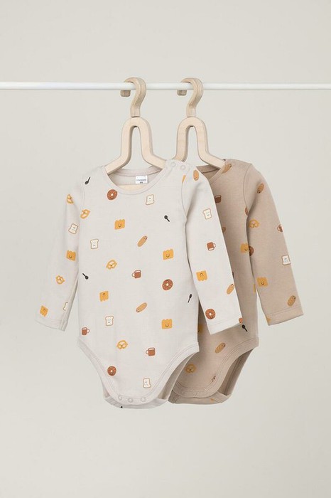 Боди в упаковке 2 шт для новорожденных из мягкого, эластичного трикотажа произведенного из натурального хлопка. Изделие застегивается на кнопки. Оригинальная набивка выполнена из стойких, гипоаллергенных, текстильных красителей. Все трикотажные полотна производятся в соответсвии с нормами Швейцарского сертификата ЭкоТекс.