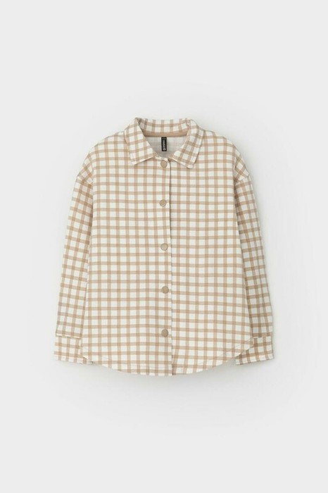 Crockid рубашка для дев КР 302559-1/бежевая клетка на сахаре к567