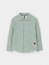 Свободная трикотажная рубашка для девочки из мягкого петельчатого футера. Застёгивается на кнопки. Модель с закругленным низом и спущенным плечом.