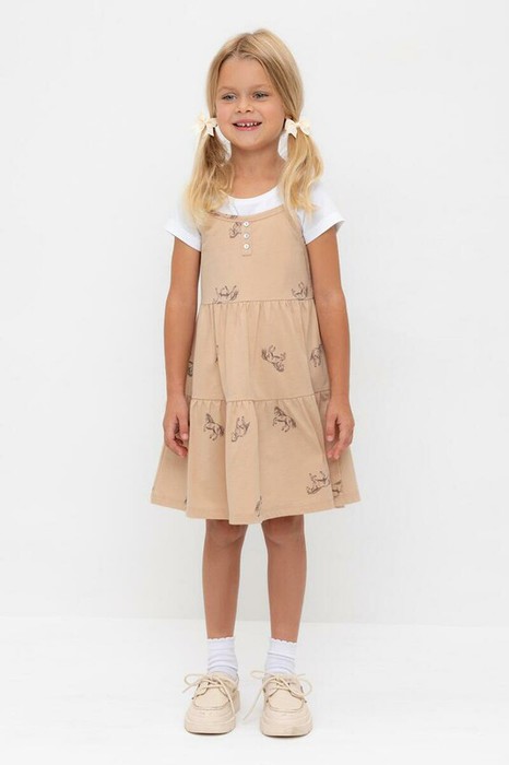 24.03 Crockid сарафан для дев КР 5796-1/нежный бежевый,милые лошадки к567