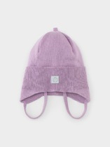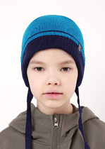 Шапка из хлопковой пряжи на завязках с мягким трикотажным подкладом из интерлока. На передней части шапочки пришит светоотражатель. Украшена вывязанным узором в полоску.