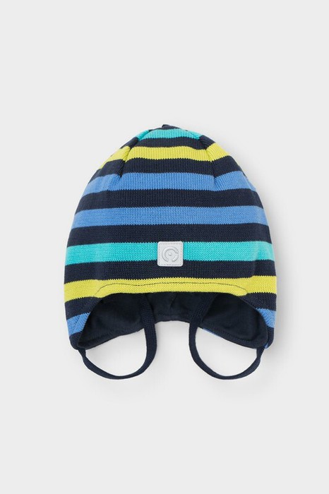 Демисезонная шапка для мальчика из  смесовой пряжи с добавлением высококачественного гребенного хлопка. Хлопковый подклад выполнен из трикотажного полотна переплетения интерлок. Комфортное прилегание, высококачественные материалы обеспечивают защиту от холода и хороший теплообмен. Светоотражающий элемент обеспечивает безопасность ребенка в темное время суток.