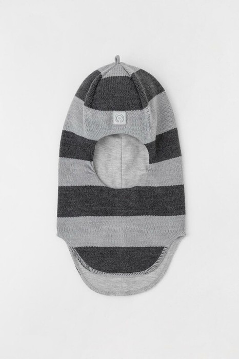 Демисезонная шапка-шлем в полоску из акрила. Мягкий подклад из трикотажного полотна интерлок. Комфортное прилегание, высококачественные материалы обеспечивают защиту от холода и хороший теплообмен. Светоотражающий элемент обеспечивает безопасность ребенка в темное время суток.