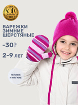 Двойные варежки из полушерстяной пряжи. Эластичные манжеты фиксируют рукавицу на запястье.