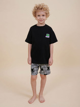 Трикотажный пижамный комплект из натурального хлопка. У футболки короткие рукава со спущенными плечами. Шорты с поясом на резинке. Оригинальная набивка выполнена из стойких, гипоаллергенных текстильных красителей. Все трикотажные полотна производятся в соответствии с нормами Швейцарского сертификата ЭкоТекс.