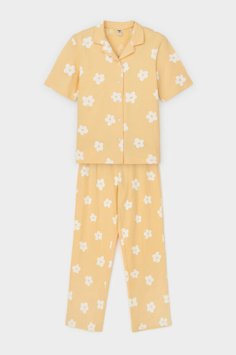 Трикотажный пижамный комплект из натурального хлопка. В комплекте рубашка с короткими рукавами и застежкой на пуговицы. Прямые брюки с удобным поясом на резинке. Оригинальная набивка выполнена из стойких, гипоаллергенных текстильных красителей. Все трикотажные полотна производятся в соответствии с нормами Швейцарского сертификата ЭкоТекс.