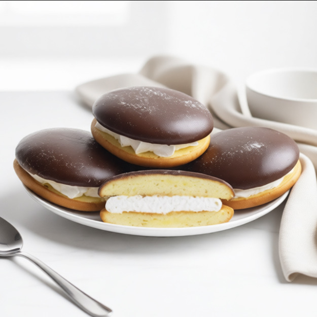 Состав: мука пшеничная хлебопекарная, сахар, яйцо куриное, маргарин «Столовый с Молочным вкусом и ароматом» 82% (рафинированные дезодорированные масла в натуральном и модифицированном виде (пальмовое масло и его фракции, подсолнечное масло), вода питьевая, эмульгаторы (Е471, Е475), соль пищевая, ароматизатор «Сливки-молоко», краситель Е160а, регулятор кислотности - лимонная кислота), вода питьевая, начинка термостабильная (сироп глюкозный, вода питьевая, сахар, загустители Е1422, Е466),жир растительный пальмовый, регуляторы кислотности (кислота лимонная, Е331iii), ароматизаторы, соль, краситель - диоксид титана, консервант – сорбат калия, эмульгатор (Е435)), полуфабрикат кондитерский пастообразный крем (сахар, жиры и масла растительные, сыворотка сухая молочная, молоко сухое обезжиренное, эмульгатор (лецитин соевый Е322), ароматизаторы («Ванилин», «Концентрированное молоко»), кефир 2,5%, крем на растительных маслах (вода, заменитель какао нетемперируемый лауринового типа (рафинированное, дезодорированное растительное масло, эмульгатор соевый лецитин) сахар, молочный белок, стабилизатор Е466, эмульгатор (Е400(i), Е472b, E472e), влагоудерживающий агент Е420(ii), регулятор кислотности Е339 (ii), соль поваренная пищевая, ароматизатор « Сливочная ваниль»), комплексная пищевая добавка (крахмал пшеничный, разрыхлители: Е450(i), Е500(ii); сухое обезжиренное молоко, сухой глюкозный сироп, эмульгаторы E472b, Е472а, ароматизатор «Ваниль», соль поваренная, красители Е101, Е160 b.), патока крахмальная карамельная, - смесь сухая для приготовления суфле, безе (сахар, белок яичный сухой, загуститель (Е466), соль поваренная пищевая, регулятор кислотности (кислота лимонная)), комплексная пищевая добавка-эмульгатор пастообразный (вода, эмульгаторы Е471, Е475, сахар, влагоудерживающий агент Е1520, консервант Е202), растительное масло, разрыхлитель теста двойного действия (разрыхлитель (Е450i, E500ii, E341i) кукурузный крахмал, агент антислеживающий (Е170), регулятор кислотности (Е330)), агар, соль, сода пищевая, лимонная кислота.