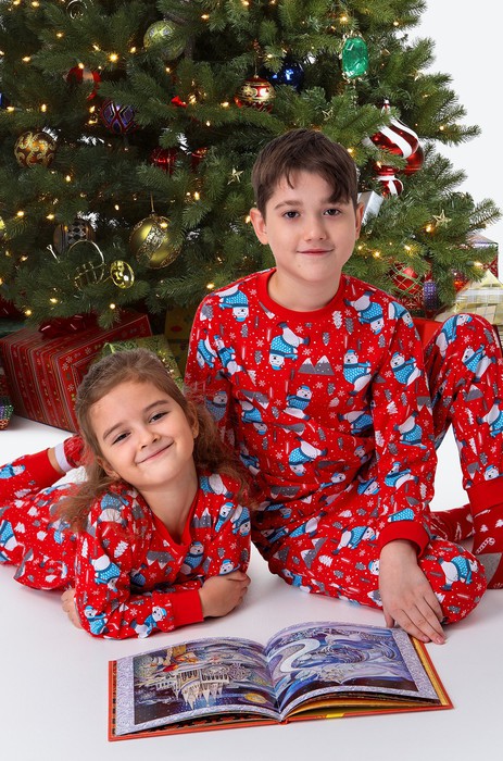 Детская новогодняя пижама с брюками выполнена из натурального 100% хлопка. Свободный крой не сковывает движений и позволяет ребенку всегда оставаться активным, а яркий красный цвет и праздничный принт Мишки создают уютную атмосферу и поднимают настроение. Трикотажная пижамка для мальчиков и девочек станет отличным подарком на Новый год и Рождество.