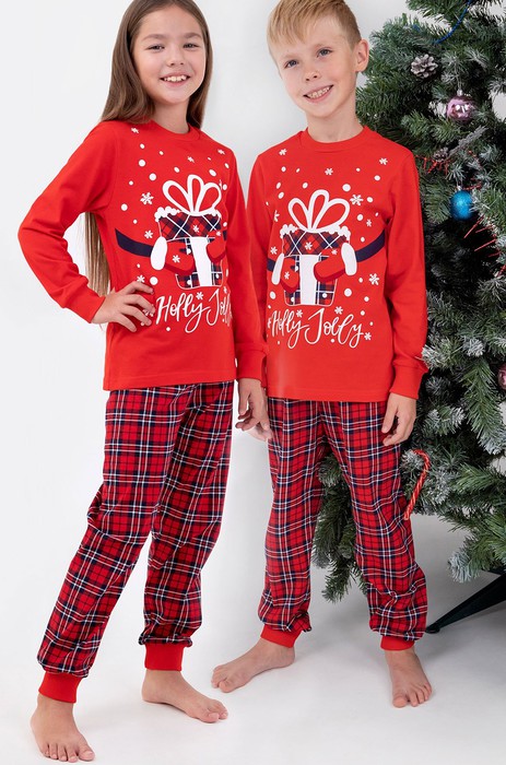 Новогодняя пижама с клетчатыми брюками для детей и подростков выполнена из тонкого трикотажа кулирная гладь, которая отлично пропускает воздух. Она не боится частых стирок и надолго сохраняет первоначальный внешний вид.