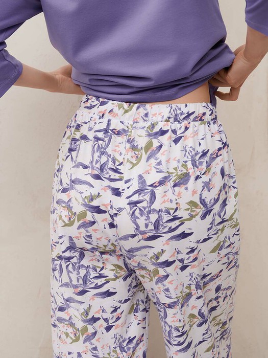Женский домашний комплект: свободная фуфайка и свободные брюки. В составе – мягкий хлопок, который обладает высокой воздухопроницаемостью, отлично впитывает влагу и подходит даже для самой чувствительной кожи. Добавление эластана увеличивает износостойкость и прочность.Универсальный вариант на каждый день, который отлично подойдет не только для дома, но и для сна. Однотонный лавандовый верх гармонично сочетается с акцентным низом, позволяя создать стильный и женственный образ.
