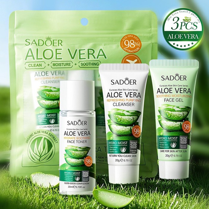 Дорожный набор из 3 средств для лица с экстрактом Алоэ Sadoer (Пенка + Тонер + Г