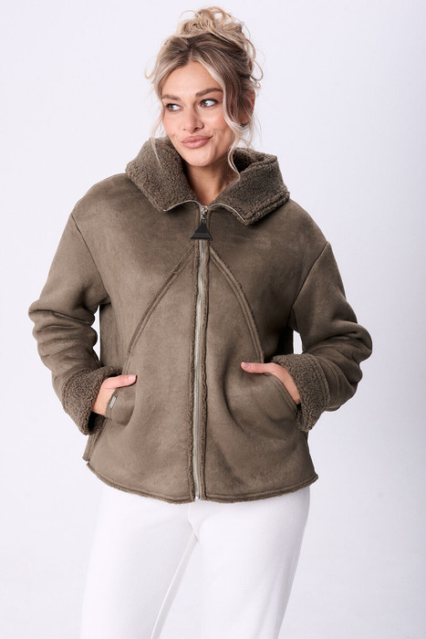 Кардиган женский полуприлегающего силуэта с центральной застежкой на тесьму-молнию. По спинке средний шов, вытачки по горловине. По переду накладные карманы фигурной формы. Рукав втачной 2-шовный с притачным манжетом, спущенная линия плеча. Капюшон с центральной частью и отрезной отделочной деталью по отлету. В качестве отделки используется фурнитура.Длина по спинке 60 см. Длина рукава 62 см.
