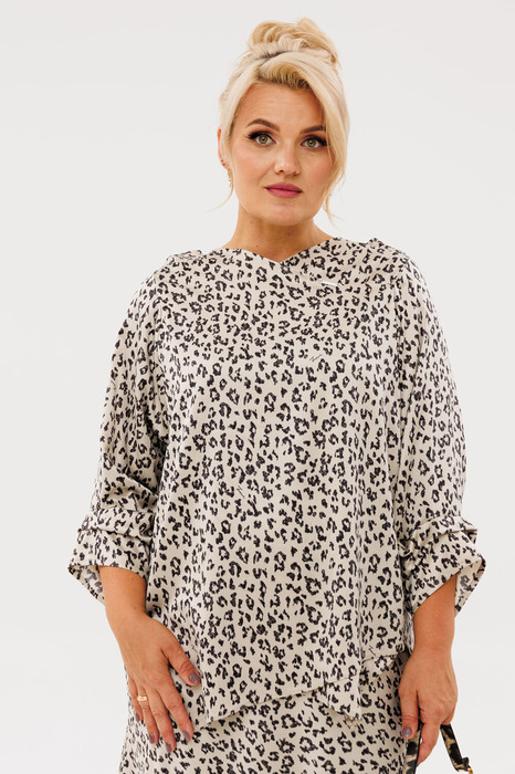 Блузка с анималистичным принтом-это всегда стильно к тому же является трендом этого сезона! Элегантный дизайн блузки от бренда «Anastasia» подарит комфорт и уверенность в себе. Особенности модели: это необычный крой. Модель прямого силуэта, рукав углублённый, рубашечного типа. Перед идет с запахом, низ блузы асимметричный, по полочке углы, спинка закруглённая, удлинённая. По рукаву идут защипы. По горловине нашит металлический логотип бренда.  Такой женский офисный стиль можно носить, сочетая с другими вещами гардероба, создавая новые образы. Ткань атласная качественная и очень комфортная. Этот универсальная стильная блузка есть в больших размерах. Она отлично подойдет зимой и летом для офиса, для праздника, на каждый день, для вечеринки и корпоративы, для прогулок, для отдыха, для работы, на выпускной, на день рождения для высоких и для невысоких девушек и женщин. Блузка станет любимой вещью в гардеробе и сделает Ваш образ незабываемым! В «Анастасия» Вы всегда найдете богатый выбор качественной одежды для женщин больших размеров. Длина по спинке: 78 см. Длина рукава: 45 см