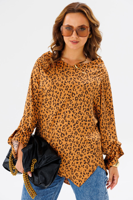 Блузка с анималистичным принтом-это всегда стильно к тому же является трендом этого сезона! Элегантный дизайн блузки от бренда «Anastasia» подарит комфорт и уверенность в себе. Особенности модели: это необычный крой. Модель прямого силуэта, рукав углублённый, рубашечного типа. Перед идет с запахом, низ блузы асимметричный, по полочке углы, спинка закруглённая, удлинённая. По рукаву идут защипы. По горловине нашит металлический логотип бренда.  Такой женский офисный стиль можно носить, сочетая с другими вещами гардероба, создавая новые образы. Ткань атласная качественная и очень комфортная. Этот универсальная стильная блузка есть в больших размерах. Она отлично подойдет зимой и летом для офиса, для праздника, на каждый день, для вечеринки и корпоративы, для прогулок, для отдыха, для работы, на выпускной, на день рождения для высоких и для невысоких девушек и женщин. Блузка станет любимой вещью в гардеробе и сделает Ваш образ незабываемым! В «Анастасия» Вы всегда найдете богатый выбор качественной одежды для женщин больших размеров. Длина по спинке: 78 см. Длина рукава: 45 см
