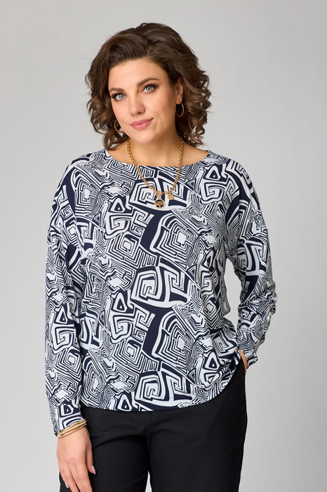 Совместные покупки Тюмень Женская одежда Джемперы, свитеры, водолазки — Джемпер Bliss 8169 синий, белый (принт лабиринт)