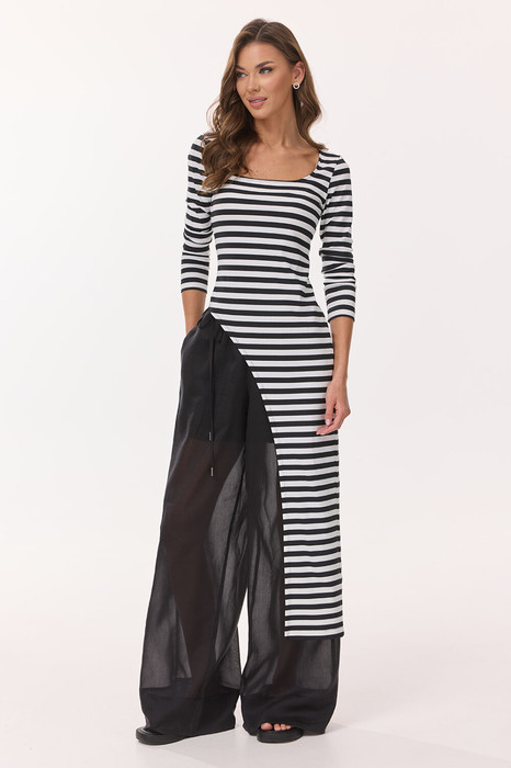 Стильный трикотажный джемпер, с асимметричным вырезом, полуприлегающего силуэта, удлиненный с втачным одношовным рукавом. Вырез горловины полочки каре.