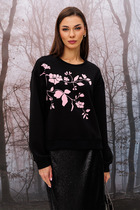 жемпер удлинённый трикотажный вязанный с длинным рукавом-реглан. По переу нашивка «LOVE». Внизу по боковым швам разрезы. Горловина - стойка с отворотам, по краю которого нашивка «BUTER».