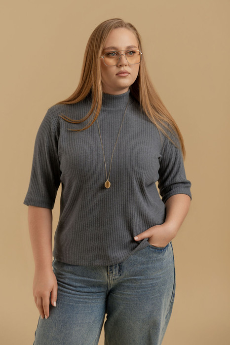 Джемпер женский полуприлегающего силуэта из трикотажного полотна. Вырез горловины оформлен воротником - стойкой. Рукава - втачные с естественной линией плеча.