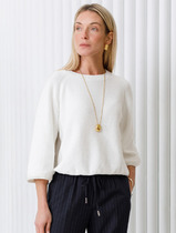 Детали: стойка-воротник средней высоты (резинка), усиленные манжеты и пояс в резинку для предотвращения «растрёпывания» кромки при носке; плечи скроены свободно — посадка слегка оверсайз, что облегчает комбинацию со многими низами.
