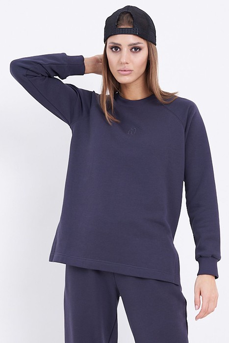 Нежный женский удлиненный свитшот, пошит из комфортной, всесезонной ткани. Свитшот имеет слегка расширенный к низу силуэт и разрезы в боковых швах. Бейка горловины, манжеты рукавов изготовлены из ткани-компаньена кошкорсе. Свитшот имеет рукава покроя реглан. По центру переда вышит логотип в цвет ткани.