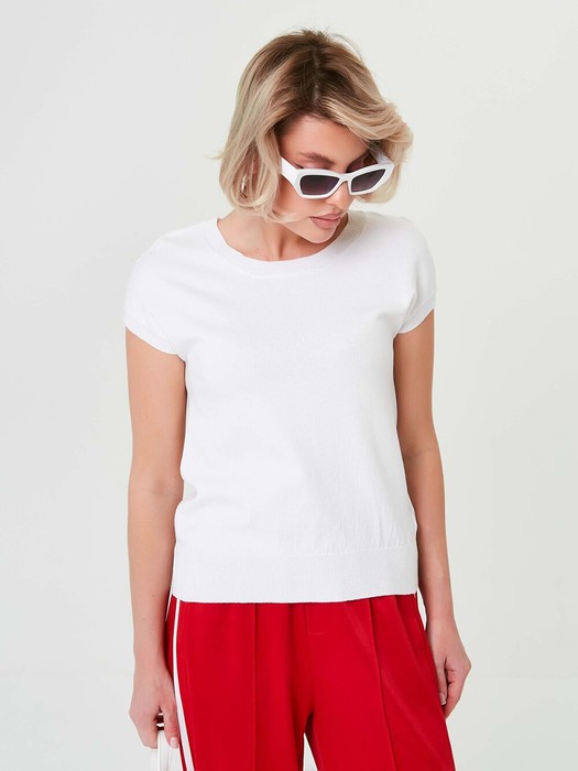 Тонкий, но плотный, легкий джемпер из вискозной пряжи длиной выше линии берда (при росте 166-170 см и стандартных обхатах по груди). Силуэт изделия полуприлегающий. Линия плеча опущена, обрамлена бейкой резинкой. Вырез горловины лодочко округлый. В данном изделии следует обращать внимание на общую ширину плеч. Если пречи не стандартные широкие, то лучше выбирать по ширине плеч размер.