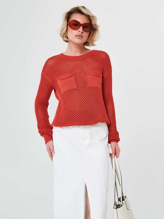 Свободный летний джемпер из хлопка прямого силуэта длиной до линии бедра (при росте 170 см). Рукав прямого покроя стандартной длины. Вырез свободный круглый расширенный. Линия плеча уведена на деталь спинки.