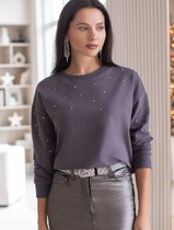 Свитшот из эластичного футера с принтом стразами