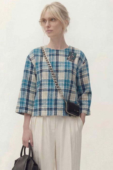 Совместные покупки Тюмень Женская одежда Джемперы, свитеры, водолазки — Джемпер Lokka 1858С белый/бирюзовый клетка