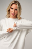 Джемпер-кейп прямого свободного силуэта. Горловина с цельнокроеным воротником-стойкой. Рукав втачной широкий, от линии локтя до запястья есть дополнительное отверстие для рук. Декорирован элементом из контрастной ткани.