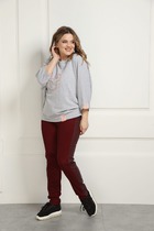 Стильный джемпер из трикотажного полотна. Горловина с V – образным вырезом, низ рукава и горловина обработаны ажурным довязом. Перед декорирован дизайнерской вышивкой.