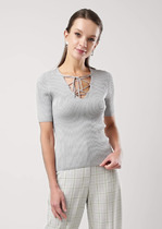 Свободный трикотажный джемпер в полоску с контрастным воротником-поло.