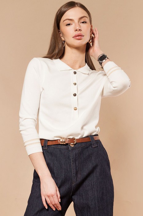 Совместные покупки Тюмень Женская одежда Костюмы, комплекты — Джемпер - поло с золотистыми пуговицами и люрексом на рукавах