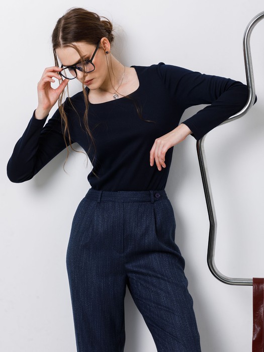 Модель полуприлегающего силуэта, с длинным рукавом и фигурным вырезом горловины.