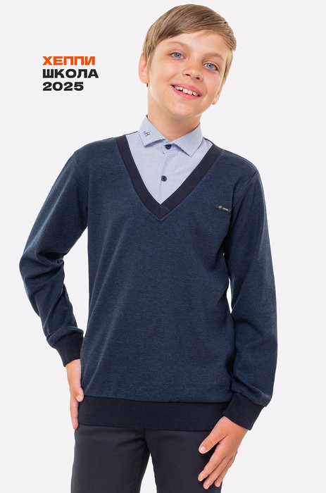 Темно-синий джемпер с длинным рукавом выполнен из хлопка с полиэстером, ткань интерлок очень долго сохраняет цвет и первоначальные свойства. Детская рубашка 2 в 1 значительно сокращает время сборов ребенка в школу!