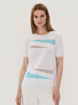 Джемпер из хлопковой трикотажной ткани. По переду расположен принт. Спинка со средним швом. Рукав одношовный, спущенный.