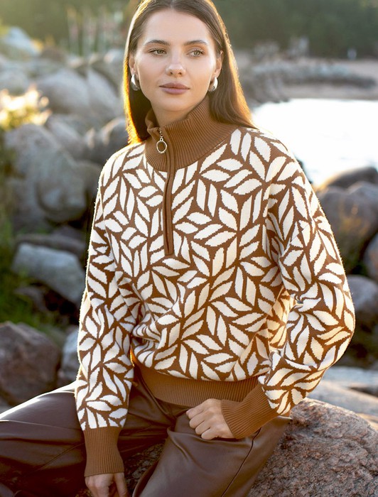 Совместные покупки Тюмень Женская одежда Футболки — Джемпер с воротом на молнии жаккардовой вязки с кашемиром