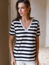 Vilatte Футболка из премиального хлопка с эластаном D49.096 белый-черный