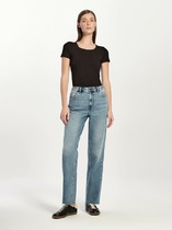 Джинсы мом с высокой посадкой - это идеальный выбор для женщин, ищущих комфорт и стиль в повседневной жизни, на работе. Брюки изготовлены из высококачественного смесового хлопка, обеспечивают идеальный баланс между удобством и прочностью. Модель с высокой посадкой, сзади с накладными карманами с отделкой и боковыми наклонными спереди. Вставки из экокожи с молниями по задним половинкам брюк внизу придают функциональности. Брюки на притачном поясе частично с резинкой.