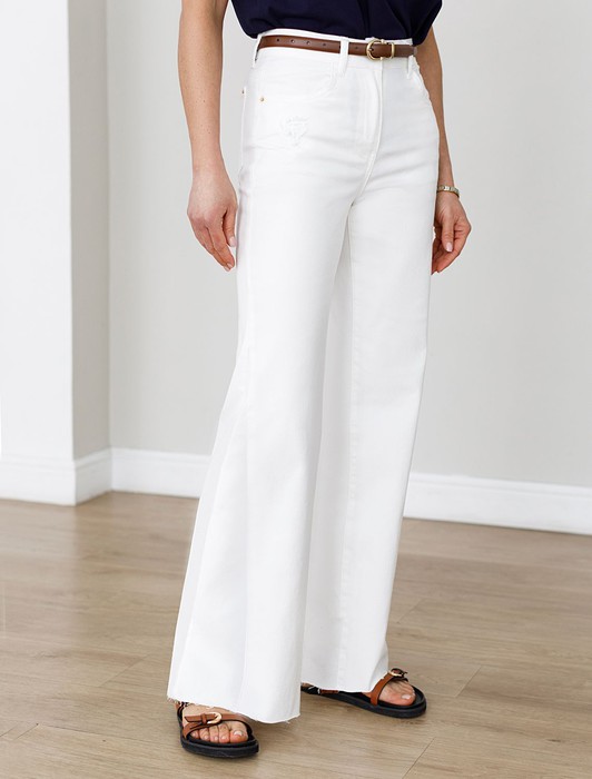 Джинсы клеш с прорезями и необработанным краем из эластичного денима средней пло